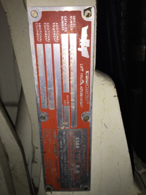 Clark Aprox. 3,500 Electric Forklift, M/N ECS25, Type E, S/N E357-0189-8972-B, 3-Stage Mast, with Cascade Slip Sheet Attachment is NOT Included, 4,500 lb. Max Capacity, S/N 45E-PS-606-00001P (Forklift Unit: 9313), INCLUDES Hertner Auto 6000 36 Volt Charger, M/N TW18-1050, S/N U75266-1-2, 208/240/480, Not Running (NOTE: Charger Unit 8; Change Charger Connector to Fit Clark Connnector)