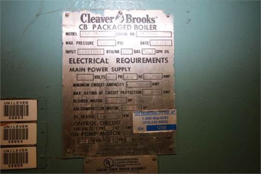 Cleaver Brooks 250 hp Boilers, M/N CB200-250, S/N L-75811, Max Pressure 150 PSI, Natural Gas (471)