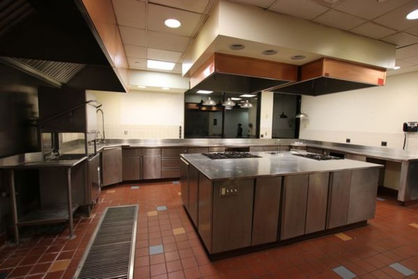 Large U-Shape All S/S Work Station, (2) Single Bowl Sinks, (1) In-Sink Erator Garbage Disposal, Approx Countertop Dims for Longest Section: 28" W x 22' L, Approx Countertop Dimensions for 2nd Largest Section: 136" L x 28" W, Approx Countertop Dimensions for Smallest Section: 64" L x 28" W, With Backsplash, Multiple Drawers and Cabinets, Some Sections Refrigerated