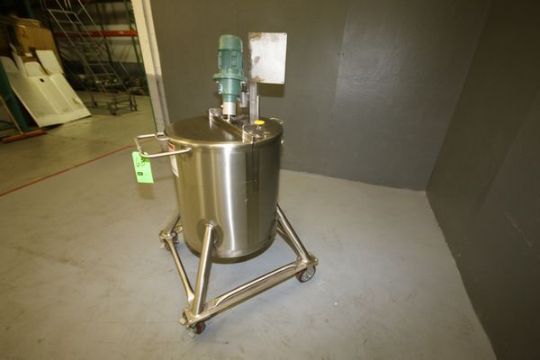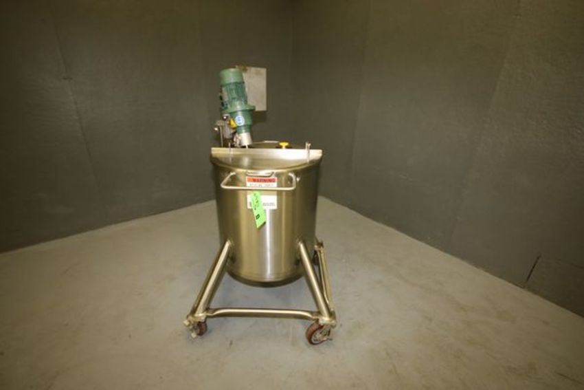 2010 Walker 30 Gal. S/S Jacketed Mix Tank, Model PZMIX, S/N WEP-85625-1 with 75 psi @ 320 F, Agitation, Mounted on S/S Portable Legs