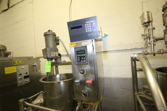 { Choice of lots: 196,197 } Walker 22 Gal. S/S Tank, S/N 6984 with Lightnin .87 hp Agitator, Mettler Toledo Load Cells with Digital Read-Out, Allen Bradley VFD, Mounted on S/S Frame with Casters (NOTE: Missing Lids and Agitator Shaft)
