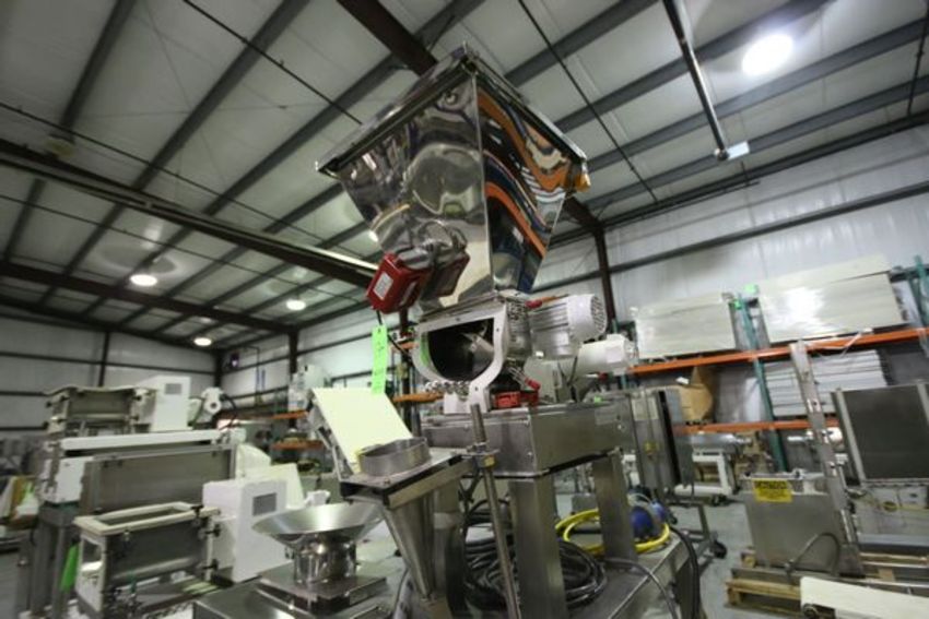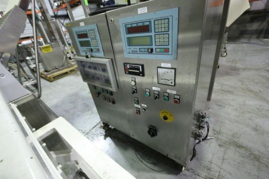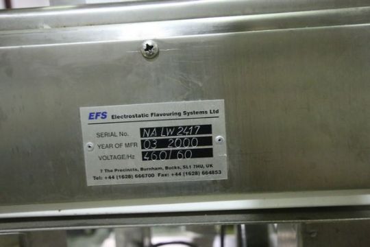 Electrostatic Flavoring System, S/N NALW2417, Mounted on Portable S/S Skid with S/S Funnel, Controls and Rospen LBC1000 Weighing and Metering Touchpad Display