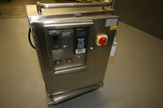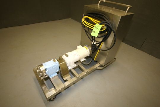 { Choice of lots: 41,42,43,44 } Waukesha Positive Displacement Pump, Model 15, S/N 151907 with 1-1/2" x 1-1/2" Clamp Type S/S Head, Leeson 2 hp Motor, 208-230/460 V, 3 Phase and Allen Bradley PowerFlex 70 VFD