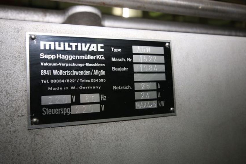 MultiVac Vacuum Sealer, Type: AGW, Masch. Nr. 1522, 220 Volts, Inside Seal Platform Dimensions: Aprox. 25 1/2" x 17 1/2"
