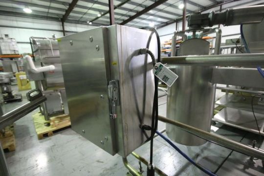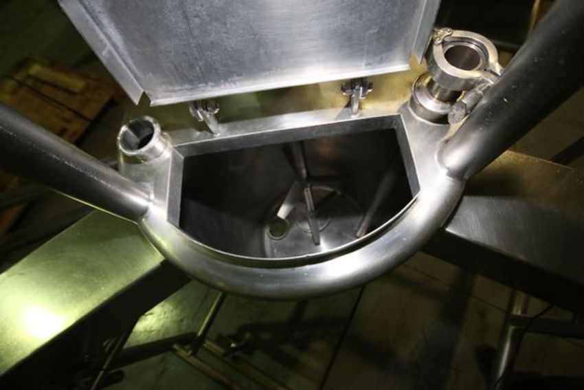 { Choice of lots: 104,105 } Aprox. 50 Gal. S/S Batch Tank with Aprox. 1/2 hp 6-Prop Agitation, Mounted on Metttler Toledo Load Cells with Digital Read Out, Part #: TB600529-3 and S/S Portable Frame