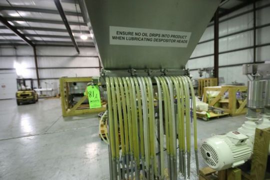 Hinds-Bock 23-Valve S/S Pouch Filler, M/N 24P-01, S/N 3279, On Portable S/S Frame, 22" W x 34" L x 19 1/2 " Deep S/S Hopperÿ