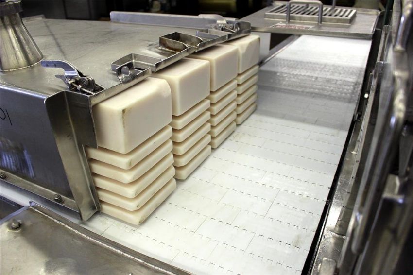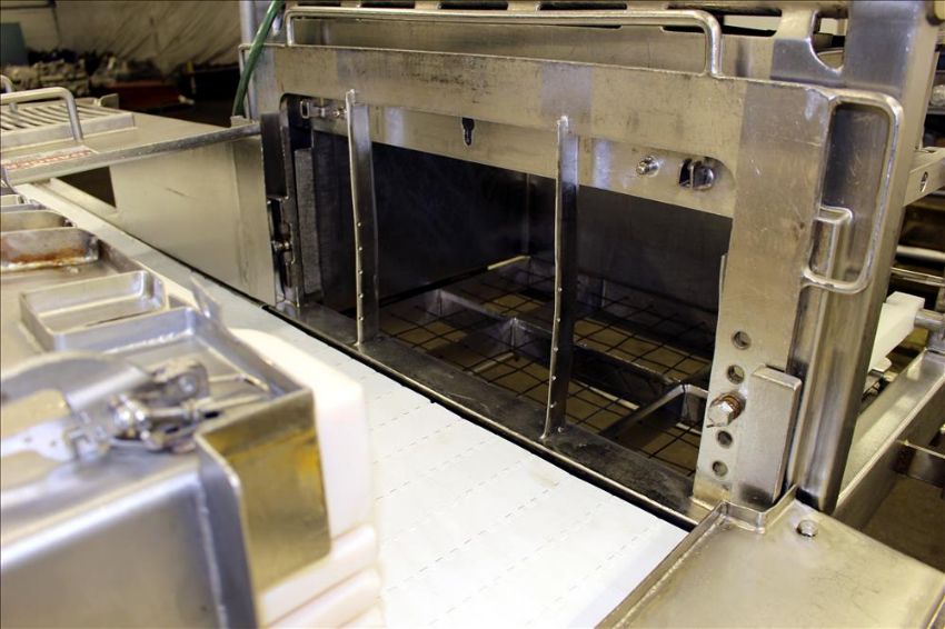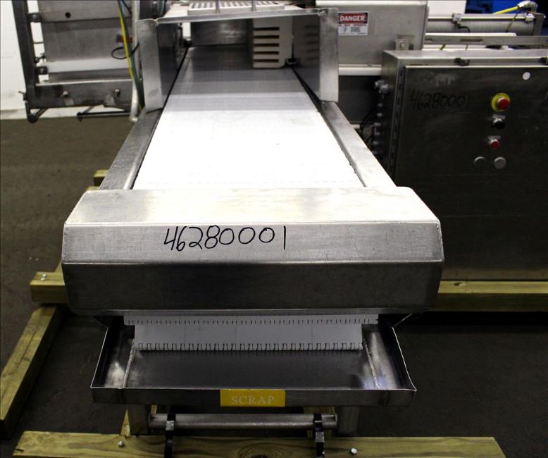 Marchant Schmidt Pneumatic Cheese Cubing Machine, Model MS80. Machine is rated at speeds up to 10,000 pounds per hour. Handles (2) 40 pound blocks of cheese, 2 blocks per cycle. Designed for hard cheese cutting (Parmesan, Romano, etc). Handles rectangular cheese blocks up to 14" wide x 7" high x 11" deep and round cheese blocks up to 14" diameter x 5" high. Follows USDA dairy guidelines. Has Allen Bradley SLC 5/04 PLC controls. Is of stainless steel construction. 3/60/480V. Serial #5470-002. Over-All Dimensions: 100"L X 90"W X 90"H, 1200# (Located in Chicago)