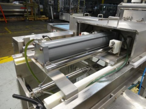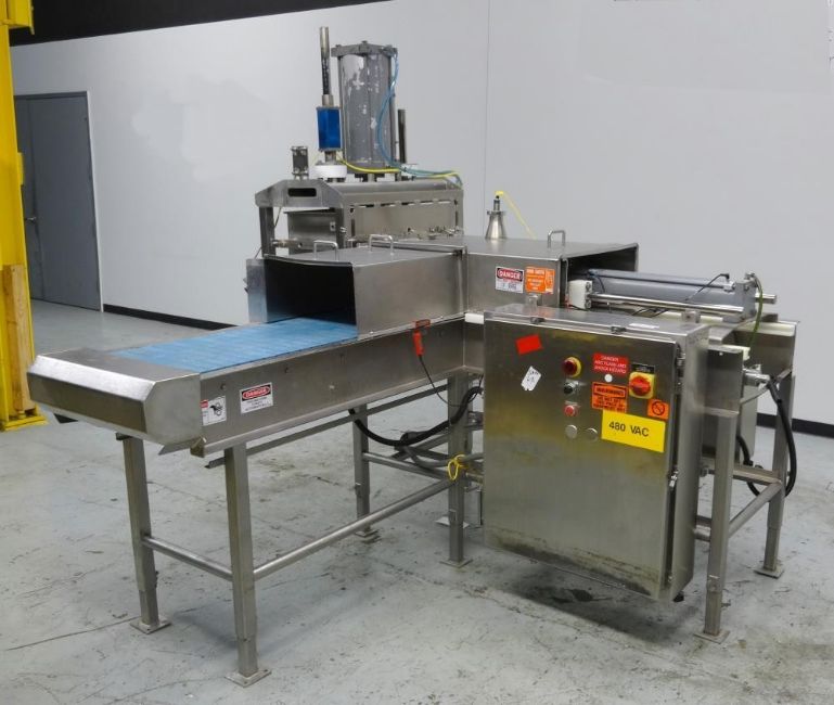Marchant Schmidt Model MS80 Pneumatic Cheese Cubing Machine. Handles (2) 40 Pound Blocks of Cheese/ 2 Blocks Per Cycle. Designed for Hard Cheese Cutting (Parmesan, Romano, etc). Product Rates up to 10,000 Pounds Per Hour. Handles Rectangular Cheese Blocks 14" Wide x 7" High x 11" Deep. Round Cheese Blocks 14" Diameter x 5" High. Follows USDA Dairy Guidelines. Serial#4366. Over-All Dimensions: 100"L X 90"W X 90"H