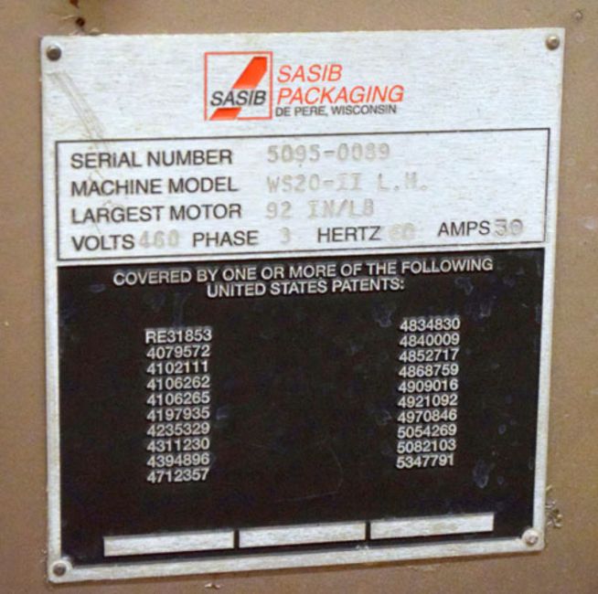 Campbell Sasib Packaging WS20-II L.H. Series II Horizontal Flow Wrapper. Approximate 4-1/2” wide 2 up seal jaw, 60” long belt infeed to chain lugs, approximate 7” apart, 36” long outfeed. Electrics 3/60/460 volt, 30 amps. Serial# 5095.0089 ***Located in Chicago, IL
