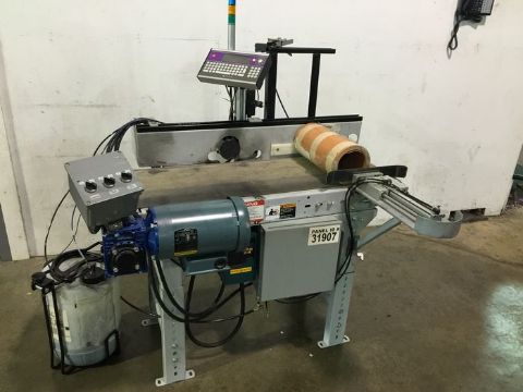 2008 Markem/Imaje Ink Jet Coder, Model 4020-1X16-N P/P, Part #225112, S/N 08320004AC with Touchpad Display, Single Head, Mounted on Hytrol 45" L x 14" W Belt Power Roller Conveyor with Spare New Belt, Pneumatic Pusher and VFD - comes with a partially full 5-gallon ink jug (LOCATED IN IOWA, FOB INCLUDED WITH SALE PRICE, ADDITIONAL CHARGES FOR ANY