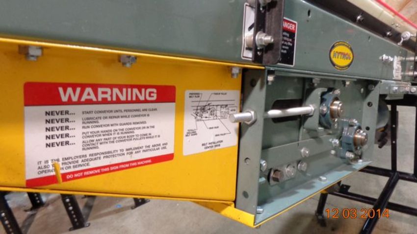 2012 Hytrol Aprox. 14 ft. L Inclined Power Belt Conveyor, with 6" Wide Belt, Drive and Leg Supports (LOCATED IN IOWA, RIGGING INCLUDED WITH SALE PRICE)***EUSA***