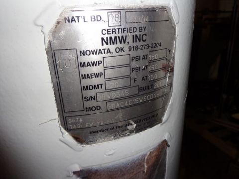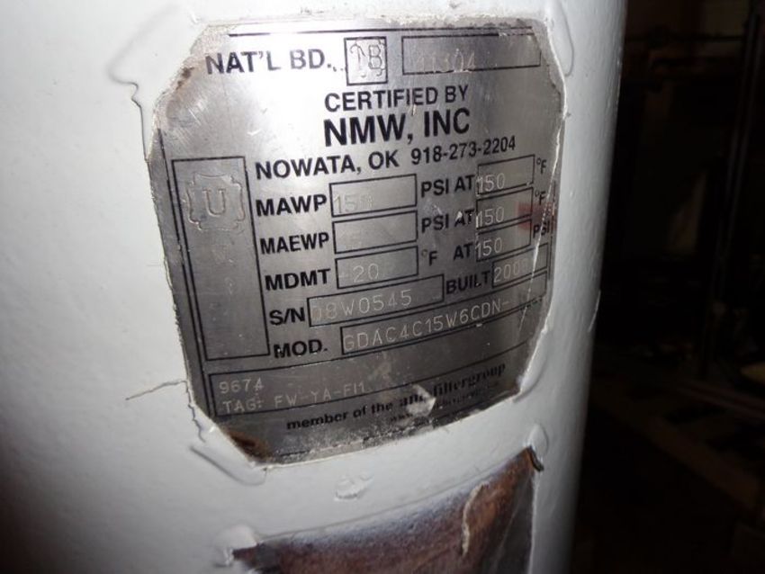Unused Nowata High Pressure liquid filter housings, Model Number GDAC4C15W6CDN-9674, Serial # 08W0545 and, Maximum Working Pressure 150 psi at 150 Deg F, 55" X 12" dia and 52" X 12" dia. (LOCATED IN IOWA, RIGGING INCLUDED WITH SALE PRICE)***EUSA***