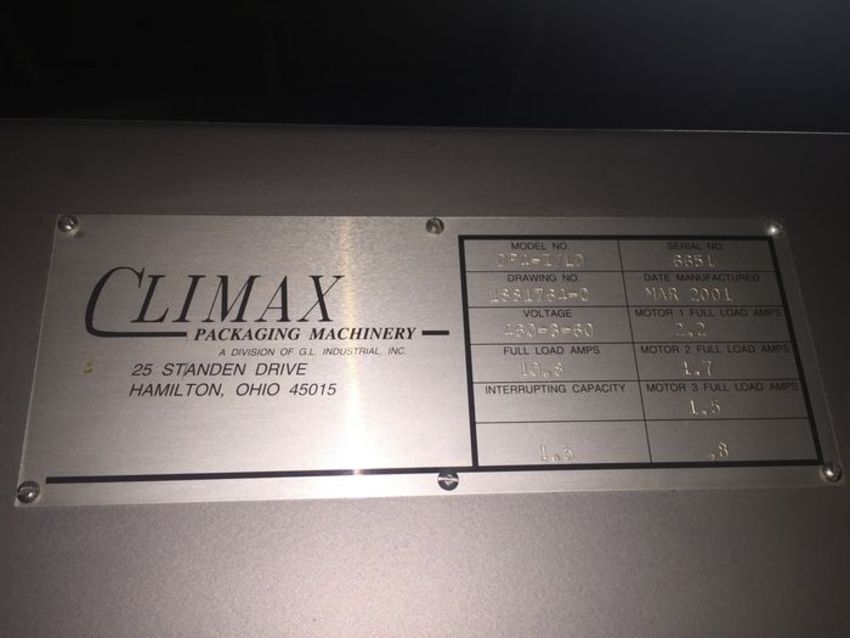 Climax Packing Machines Laner Drop Case Packer with two pallets of shoots for different size containers - Model DP4-I/LD Voltage 460-3Phae-60Hz, Full Load Amp 10.8A, Serial Number 6651 (LOCATED IN IOWA, FOB INCLUDED WITH SALE PRICE, ADDITIONAL CHARGES FOR ANY REQUESTED SPECIAL PACKAGING/SKIDDING) ***EUSA***