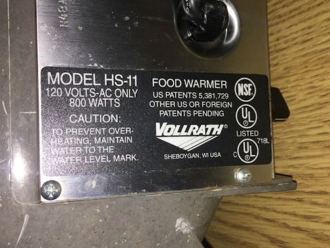 Vollrath Heat’N Serve Soap Warmer Model HS-11. 120 V, 800 Watts – UL Listed (LOCATED IN IOWA, RIGGING INCLUDED WITH SALE PRICE)***EUSA**