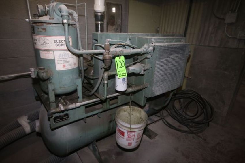 { Group of lots: 120,121 } Gardner Denver 20 hp Screw Air Compressor, Model EBEREC, S/N M33376, Mounted on Horizontal Air Receiver with Zander Absorbent Air Dryer, Type K-MT6, S/N 04/32660