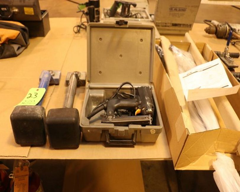 (7) Pc. Carpet Installation Tools including: (2) Crain Model 600 Knee Kickers; Duo Fast Electric Stapler; Uline H-957 Carpet Tape Dispenser and (3) Taylor Tools Carpet Clamps