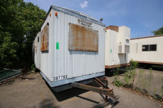 { Choice of lots: 139, 140, 141, 143 } Aprox. 32 ft. LO x 10 ft. W Tandem Axle Office Trailer with Contents and Stairs (#087793) (NOTE: Sold Without Title)