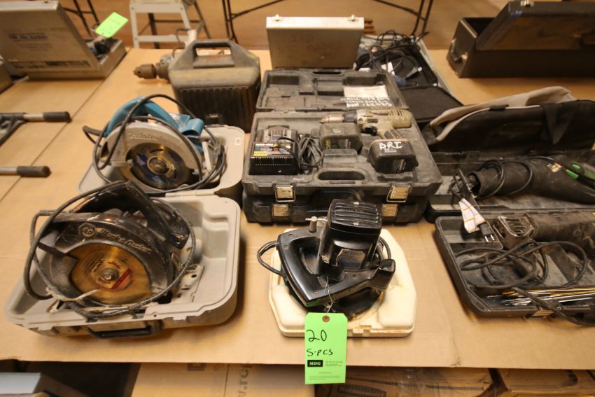 { Group of lots: 19, 20 } Ryobi, Black & Decker and Crane Circulator Saws with (2) Cases including (2) Porta Cable Cordless Drills