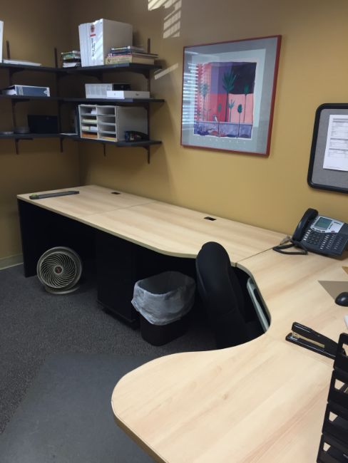 Contents of Office with Desk, (2) Chairs, 4-Drawer Metal File Cabinet, 2-Drawer Metal File Cabinet, (2) Black Rolling Shorter File Cabinets (NOTE: Computer and Telephone Not Included) (**1-WEEK DELAYED REMOVAL**)
