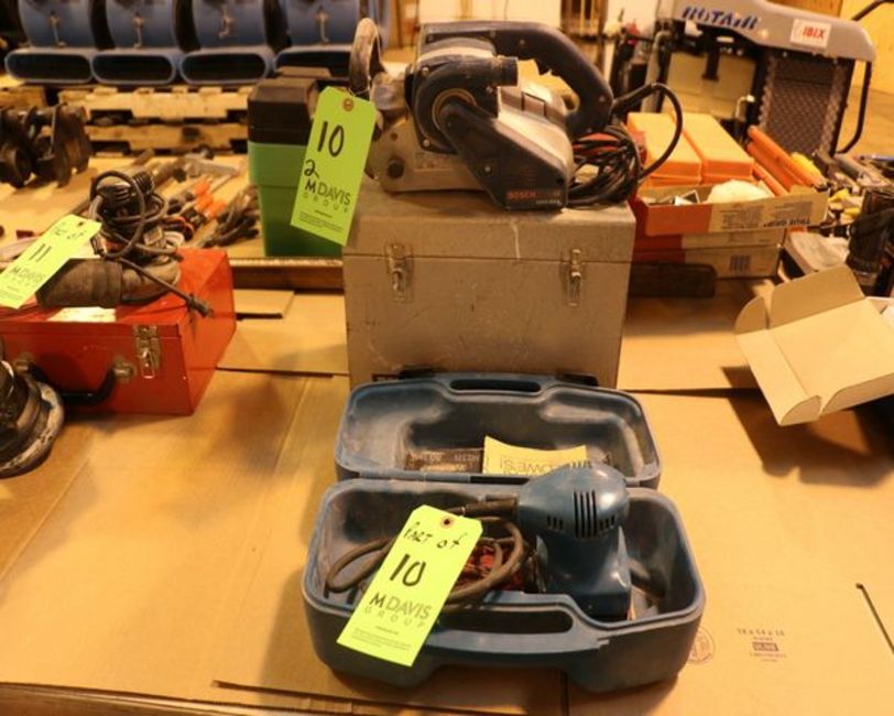 Bosch 1275 DVS Electric Belt Sander and Makita Palm Sander with Cases
