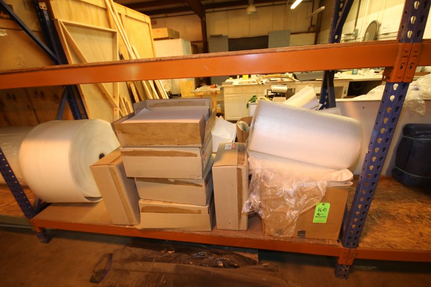 Assorted Packing Supplies and Empty Boxes Consisting of Bubble Wrap and Uline Newsprint Sheets (NOTE: Rack Not Included)