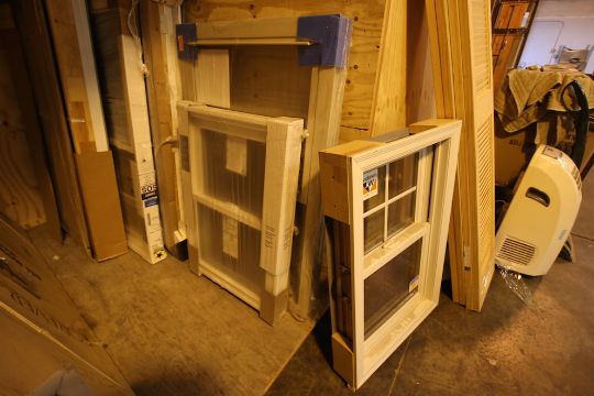 Assorted Home and Contractor Supplies, Includes (7) New Jeld Wen and Anderson Windows, (2) New Bi-Fold Doors, (4) New Front and Interior Doors, New Screen Doors, and More