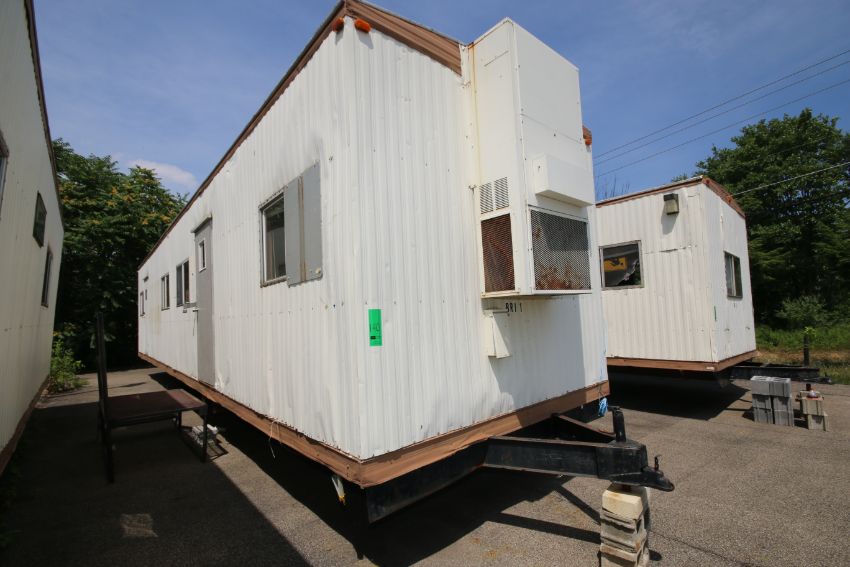 { Choice of lots: 139, 140, 141, 143 } Aprox. 44 ft. L x 10 ft. W Tandem Axle Office Trailer with Contents and Stairs (BRI 1) (NOTE: Sold Without Title)