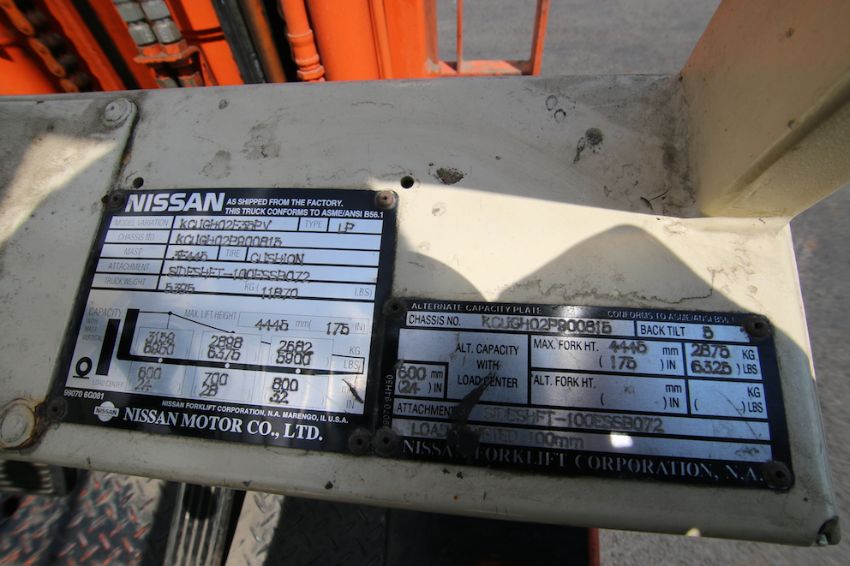 Nissan 6,950 lb. Sit-Down Propane Forklift, Model Enduro 80 with 3-Stage Mast, Side Shift, Aprox. 60" Long Forks