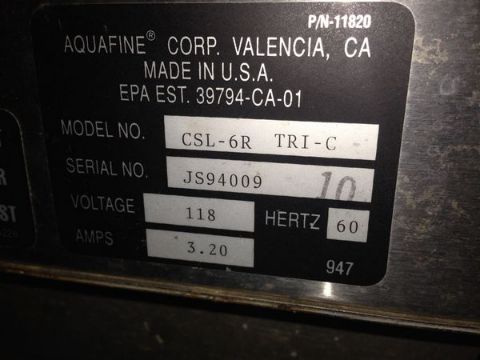 Penfield Liquid Treatment  System, Model Polishing Skid, S/N 93A710, with Aquafine UV 6 Blub Light, Model CSL-6R S/N JS94009 (Located in North Carolina #121)