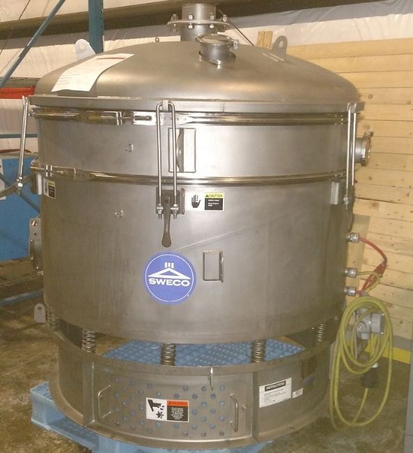 Sweco Vibro-Energy Separator / Sifter, Model Vibro-Energy PS60S248P4SDSFWO, S/N 300635-A06/05, Two-Screen Sections Each with Two Screens & Teflon Balls, 60" Diameter, 11 Mesh / 1840 Micron / 1.8 mm Screens, Wire Diameter of 0.4 mm, Plate Thickness of 16.45mm, 5 HP, 1160 RPM, 3 Phase, 215T Frame, Cont Duty, 1.15 SF, 460 V, 60 Hz, 7.8 AMPS (Located in WI #8)