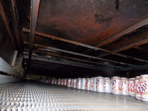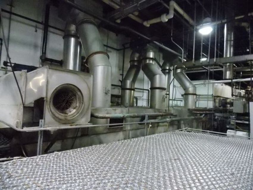 I&H 8x30 Stainless Steel Can Warming or Cooling Tunnel, Plastic Intralox Bed measures 8 feet wide x 30 Feet Long, Includes Pumps, Tube and Shell Heat Exchanger, Control Panel, Air Knife Discharge, Last Running 12oz. Cans at 1100 CPM, Last Running in 2014(Located in North Carolina # )