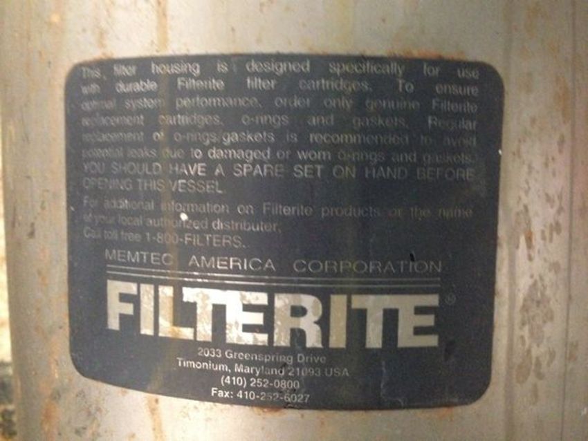 Filterite Water Polishers with Filters Model: 910717-000 S/N: LG Pressure 150 PSIG at 200 Degrees, Diameter 8in x Length 36in, 2.5in IN 2.5in OUT(Located in North Carolina #126)