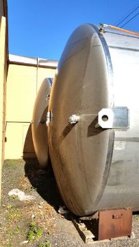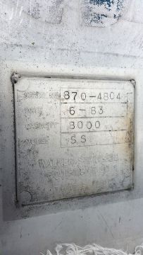 Walker 8000 Gallon S/S Vertical Mixing Tank, Stainless, Dome Top/Dish Bottom, Side Mounted Agitator, Side Man way, Carbon Steel Legs, Lifting Eyes, CIP Spray ball, 3? Inlet and Outlet, Center Discharge on Bottom, Last used in a Food Plant, Sloped bottom to drain(Located in North Carolina #74)***$750 Loading Fee