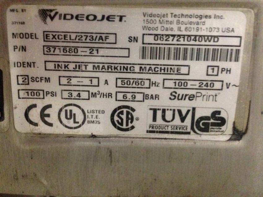 Video Jet Ink Jet Coder Excel, Model 273SE, S/N 062721040WD, Auto Flush(Located in North Carolina #102)