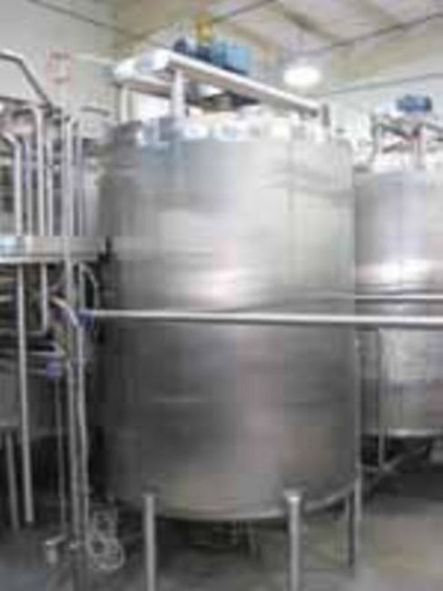 Feldmeier 6,000 Gallon Vertical Single Wall Batch Mixing Tank, S/N N-313-00, Stainless Steel Construction, #4 Finish internal, CIP Sprayball, Dome Top, Dish Bottom, Center Discharge on Bottom, Several Inlets at Top, Vertical Tank with Top Mounted Agitator, Last Used as a Blend Tank in Large Juice Facility, Mounted on SS Legs, Top Manhole, Made in 2000, 123in Overall Diameter x 207in Overall Height(Located in Oregon #77)