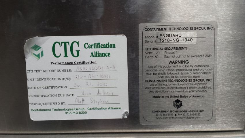 Containment Technologies Group Portable Aseptic Isolator / Containment Glove Box, Model Enguard, S/N 1210-NG-1040, Three Chamber System, Aseptic Filling Isolator Chamber, Mounted on Casters, 12’10” x 4’8” x 6’3” (L x W x H), 120 V/1 Ph/60 Hz (Loading Included in Sales Price, Bueyr Must Bring Ramp to Load and Straps to Secure)***FRMNT