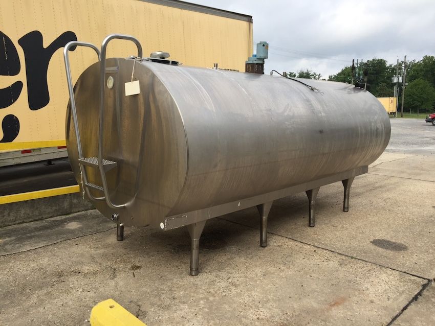 Cherry-Burrell 5,000 Gallon Horizontal Jacketed Stainless Storage Tanks, Model E, S/N 69-128-1, Stainless Steel Interior, Mild Steel Exterior, Last used at Soft Drink Plant Storing HFCS-55 Syrup, Jacketed for Freon, Glycol, Hot or Cold Water, Top Mounted Agitator, Dual CIP Sprayballs, Front Manhole, Bottom Front Discharge Outlet, In Use up to July 4th, 2016 (located in North Carolina #67)