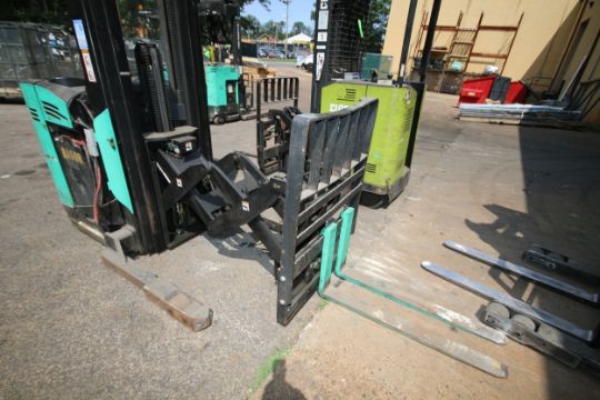 Mitsubishi Stand-Up Narrow Aisle Reach Forklift, M/N EDR15N, S/N 2DR3410713, 3,000 lb. Lifting Capacity, 7,265 Hours with 36 Volt, 18 Cell Battery (Shipping Info.: 6,000 lbs. Dims. 85" L x 52" W x 108" H; Located in West Berlin, N.J.) (Unit: 9270) (NOTE: Working Condition)