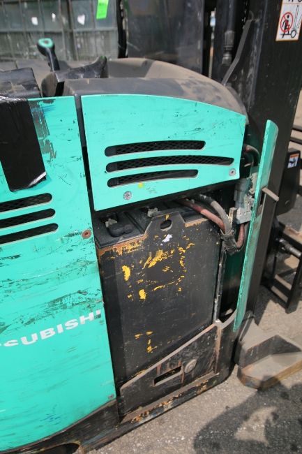 Mitsubishi Stand-Up Narrow Aisle Reach Forklift, M/N EDR15HN-36V, S/N 3DR3427720, 3,000 lb. Lifting Capacity, 4,363 Hours, with 36 Volt, 18 Cell Battery (Shipping Info.: 6,429 lbs. Dims. 85" L x 52" W x 108" H; Located in West Berlin, N.J.) (Unit: GMR338) (NOTE: Working Condition)