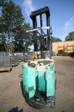 Mitsubishi Stand-Up Narrow Aisle Reach Forklift, M/N ESR36, S/N 1ESR360784, 2,750-4,000 lb. Lifting Capacity, 4993 Hours, with GNB 36 Volt, 18 Cell Battery (Shipping Info.: 8,380 lbs. Dims. 94" L x 44 1/2" W x 134" H; Located in West Berlin, N.J.) (Unit: 60784) (NOTE: Working Condition)