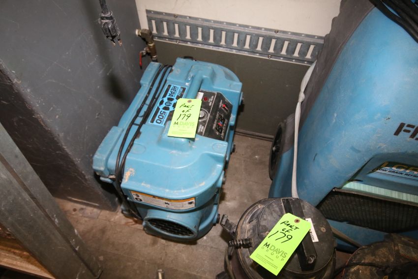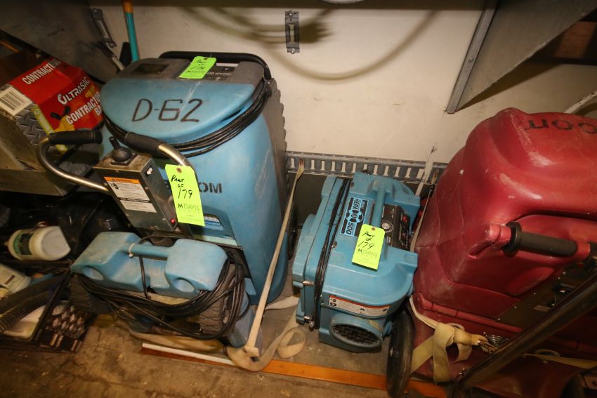 Service Equipment on Truck Unit #14 includes: (7) Dri-Eaz Ace Vertical TurboDryers; (3) Dri-Eaz Sahara Turbo Dryer Air Mover; (4) Dri-Eaz Drizair LGR2000 Low Grain Refrigerant Dehumidifiers, Model F232; (2) Dri-Eaz Hepa 500 Air Scrubbers; (1) Injectidry Systems Inc. Trapped Moisture Ventilating System, Model HP60, Type RT; Flood King PFR Portable Water Extractor; Dri-Eaz Rover HVE High Volume Extractor; Submersible Pump; Ridgid & Minuteman Vacuums; Ladders & (2) Orange Safety Cones (NOTE: Truck Mount, Hoses & Wands Not Included)
