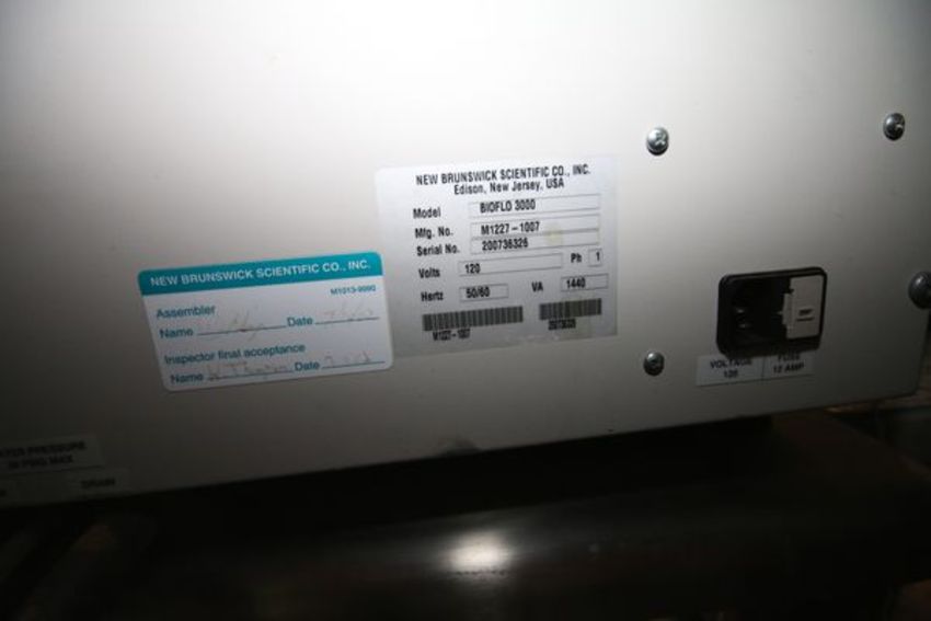 New Brunswich Batch/Continuous Bioreactor, M/N BIOFLO 3000, S/N 200736326, 120V, (1) Vessel: 10" H x 9 1/2" Dia