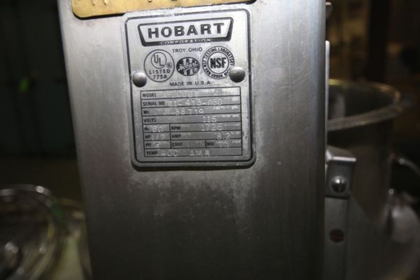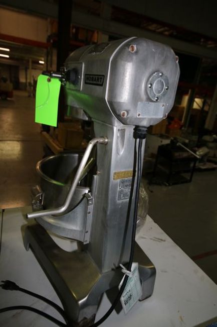 Hobart Table Top Mixer, Model A-200DT, S/N 11-413-050 with 12" W x 11" Deep S/S Mixing Bowl, Spiral Dough Hook, Whip and Flat Beater Attachments, 115 V, Single Phase