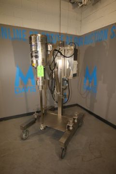 Scott Turbon Portable High Shear Mixer, Model PMS3A, S/N 2486, Pneumatic Raise and Lower, Ultimate All S/S 7-1/2 HP, 3490 RPM, 208-230/460, 3 Phase, 60 Hz Washdown Motor, Mounted on S/S Frame with S/S Control Panel on Casters, Allen Bradley Buletin 1333 Series B VFD, 230/460 V