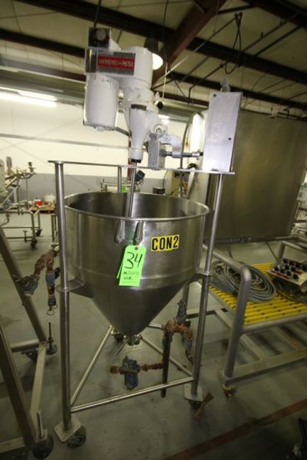 Aprox. 80 Gal. S/S Jacketed Kettle, 29 1/2" Dia x 32" Deep, Cone-Bottom, Chemineer 0.5 hp Variable Speed Agitator, on Portable S/S Skid