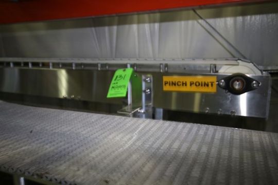 { Choice of lots: 131, 132 (P) } Approx. 115" L x 4 1/2" W S/S Product Conveyor, with Seco Bronco 2 Variable Speed Drive