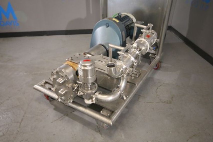 WCB 10 HP Positive Displacement Pump, Model 060, S/N 10343-97, (2) WCB Air Valve Recirulation Loop, Allen Bradley 10 HP Powerflex 70 VFD, SEW 1740 RPM Motor, Clamp-Type Head 2 1/2" Mounted on S/S Portable Skid with S/S Control Panel on Casters