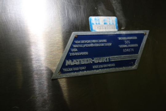 Mateer-Bert/Controlled Volume Filler , M/N 50S, S/N 804874, Mounted on Portable S/S Frame (Unit 1N080)