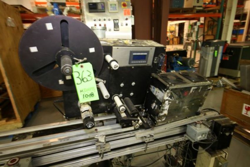 Labeling System with Conveyor, 75 In. L x 4 In. W, Mounted on Portable Frame