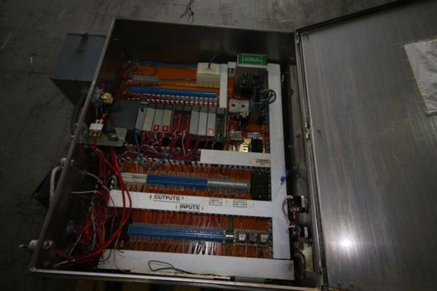 Allen-Bradley 10-Slot PLC Mounted in S/S Control Box, M/N SLC500, CAT #: 1746-A10, S/N A10-0195N1536, Series A, Box Dims.: 31"L x 12"W x 39" H, Includes S/S Square D Safety Switch